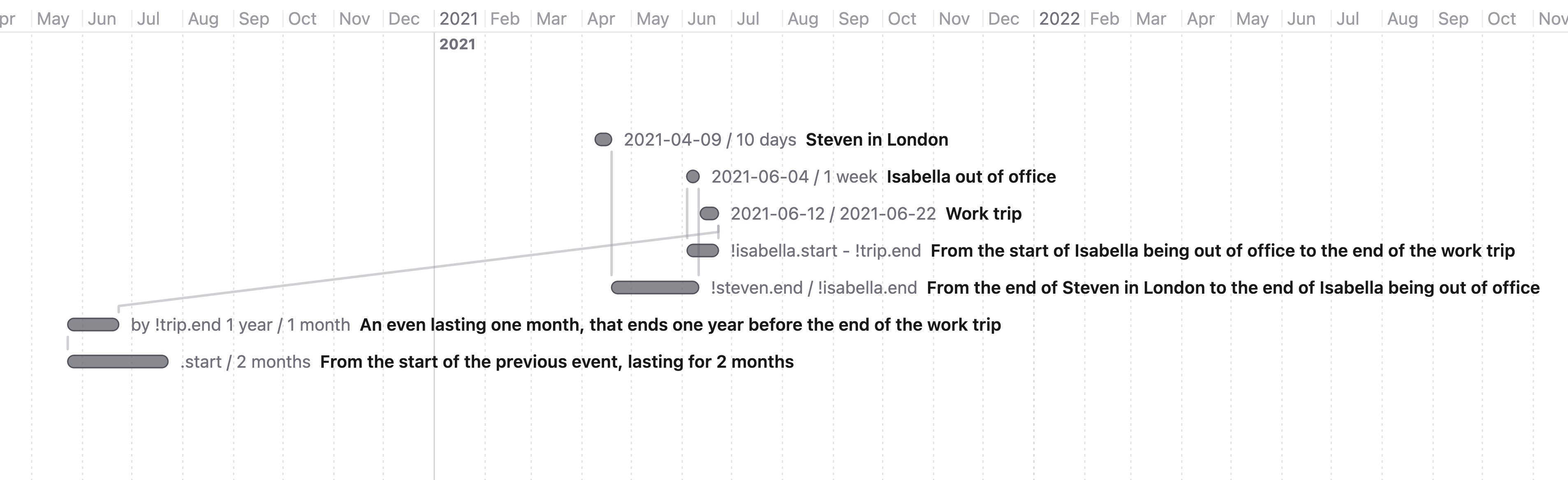 With relative dates, we can express the same timeline like so: